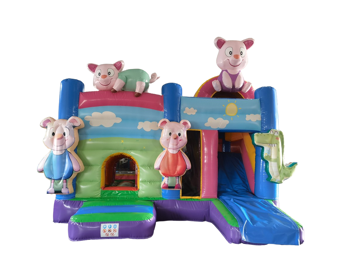 Springkussen Nijlpaard met glijbaan en dak - 5x4,5m