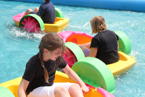 Kinderboot met schepradaandrijving voor zwembad